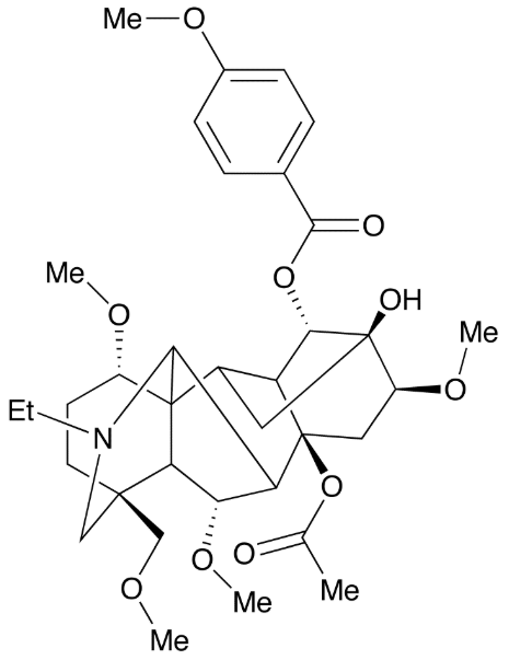 Aconitane-8,13,14-triol, 20-ethyl-1,6,16-trimethoxy-4-(methoxymethyl)-, 8-acetate 14-(4-methoxybenzoate), (1α,?6α,?14α,?16β)?-; 2H-12,3,6a-Ethanylylidene-7,9-methanonaphth[2,3-b]azocine, aconitane-8,13,14-triol deriv.; 3-DeoxyyunaconitineCrassicaulin ACrassicauline ACrassicauline I"